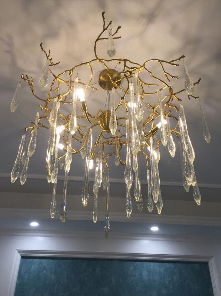 Đèn chùm serip đồng đúc pha lê giọt nước