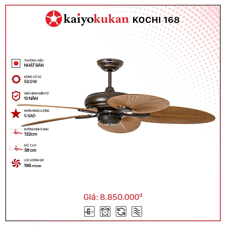 Quạt trần KaiyoKukan Kochi 168 dòng quat trần cao cấp đến từ công nghệ Nhật Bản. với thiết kế sát trần độc đáo, thiết kế dành riêng cho những thiết kế như quán cafe, khu nghĩ dưỡng, resort.